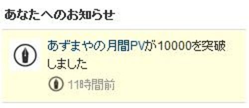 「あなたへのお知らせ」に通知が来ました。 当ブログの月間PVが10000を突破したそうです。 …? accessRankingタグに月毎のGoogleアナリティクスでのPVを載せておりますが、そちらの情報ではずいぶん前から超えているようです。 アクセス解析は「はてなブログ…